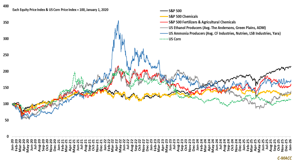 Exhibit 1: Ammonia equities stay resilient as supply discipline and logistics scarcity dominate the cycle.