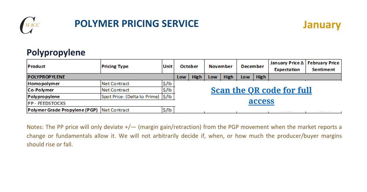 North America Polypropylene Polypropylene – January’26 Monthly Price Expectation Report Polypropylene – January’26 Monthly Price Expectation Report January 29, 2026 No Comments