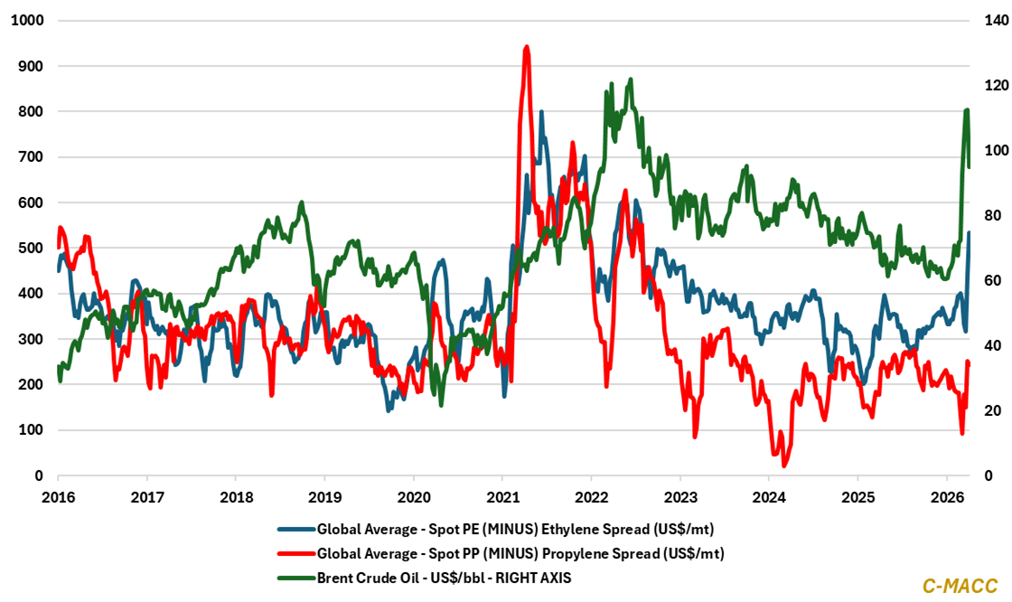 • Polypropylene (PP): Global PP pricing is being set by propylene dislocation, with outages steepening the cost curve and rapidly widening margin dispersion across regions, reinforcing integrated producer advantage globally.