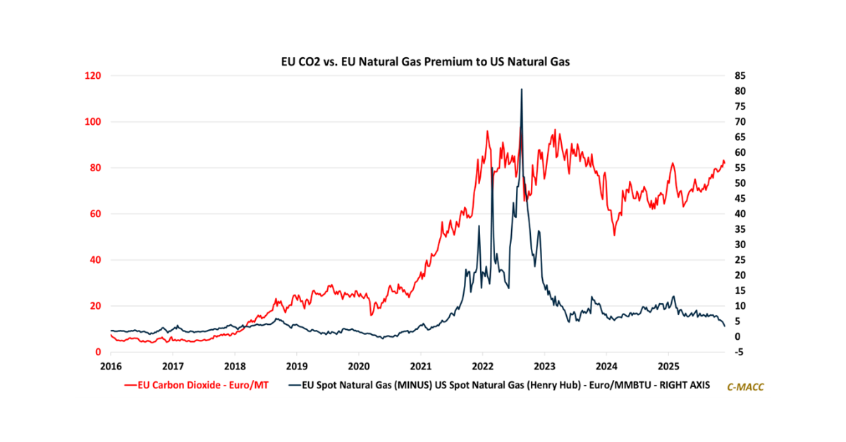 Global Market Analysis Under Pressure: Natural Gas Spreads Compress, and Policy Expectations Turn Markets Inside Out Key Findings Exhibit 1: EU carbon prices outpace fading