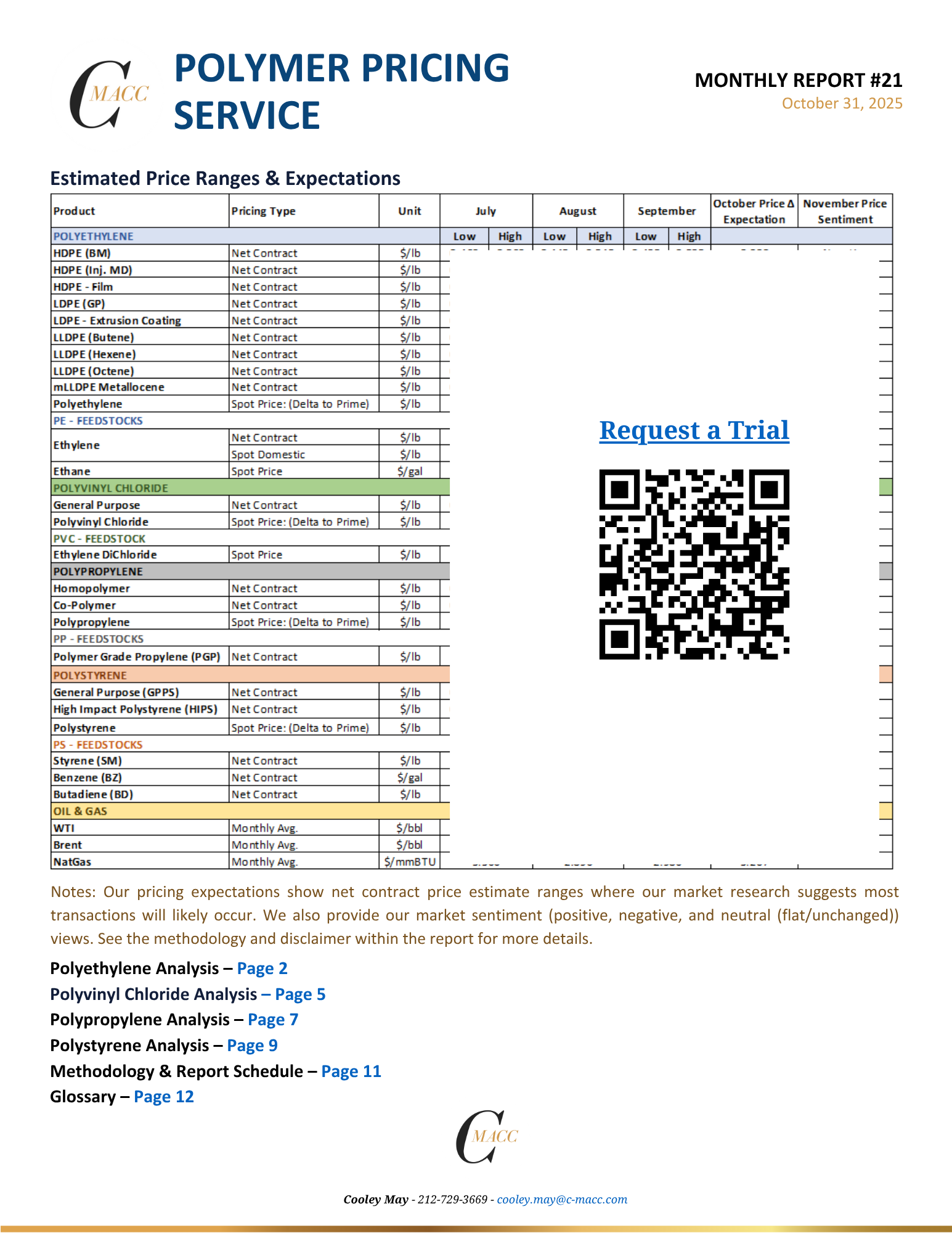 Polymer Pricing Service Polymer Price Expectations – October – Monthly Report # 21 Polymer Price Expectations – October – Monthly Report # 21 October 31, 2025 No Comments