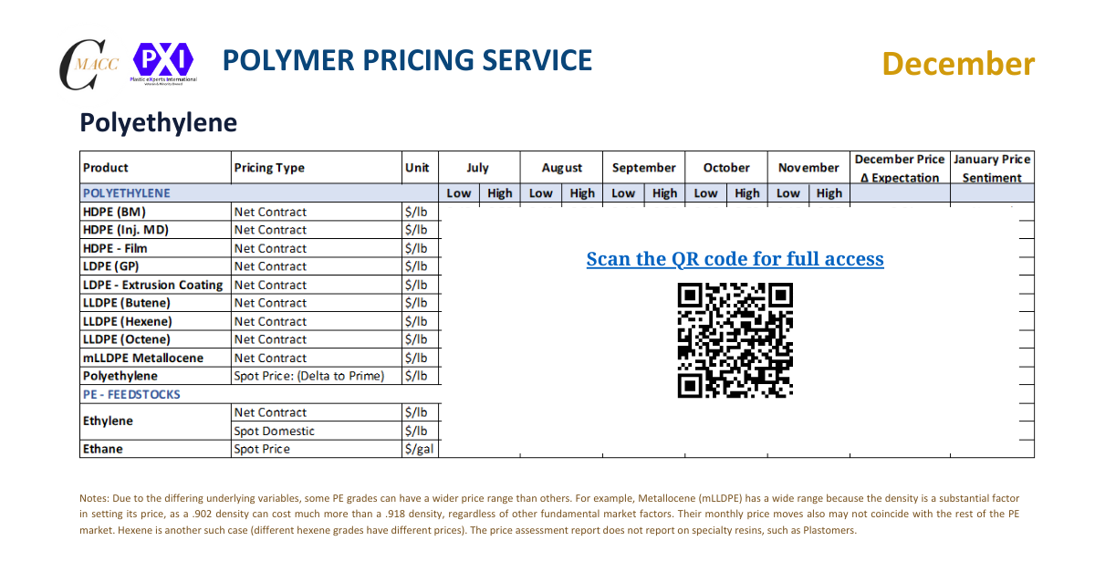 North America Polyethylene Polyethylene – December Monthly Pricing Report Client Login Username or Email Password Remember me Lost your password? Learn About Our Subscriptions and Request a Trial Contact us at cmaccinsights@c-macc.com to gain December 30, 2024 No Comments