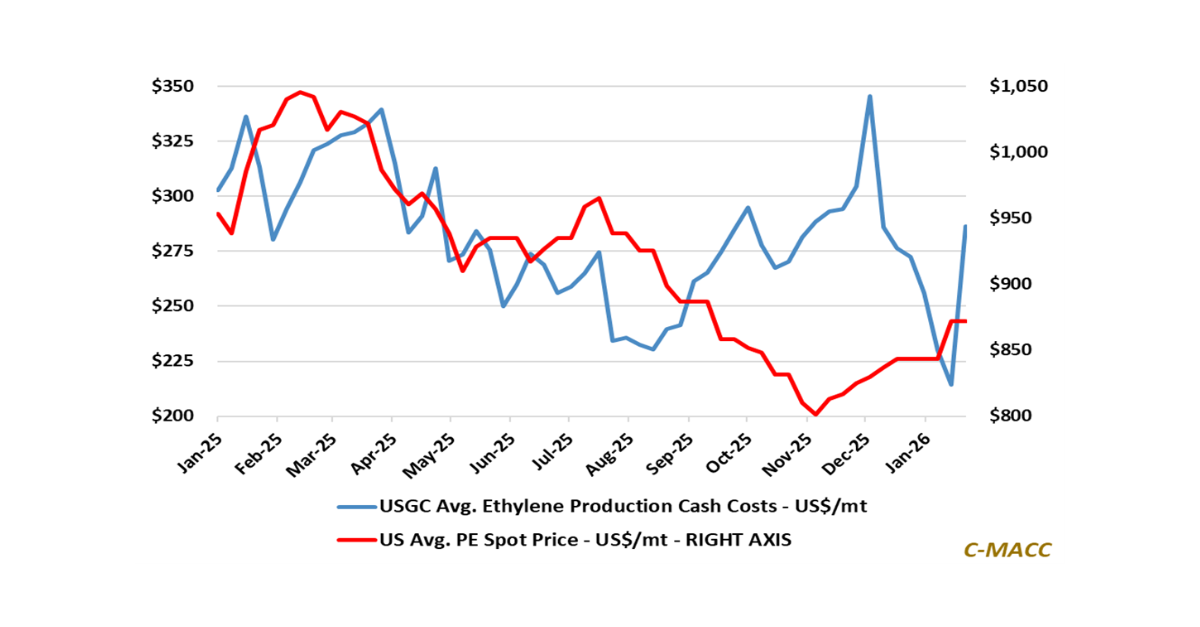 General Thoughts: Potential weather-driven disruptions from US Winter Storm Fern could push polymer prices higher, helping producers implement price hikes. Absent global rationalization, regional episodic