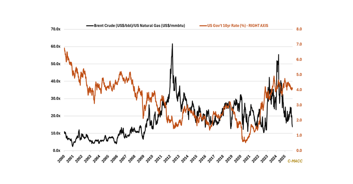 Depressed oil-to-gas ratios and elevated soy-to-corn prices shift chemical-sector risk profiles: commodity chemical underperformers in 2025 face low expectations in 2026, whereas agriculture faces the