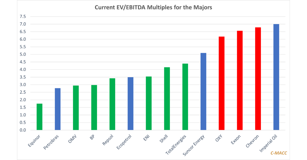 No love for transition and sustainability US integrated oil companies command a much higher premium than many of their European peers. Source: Capital IQ, C-MACC