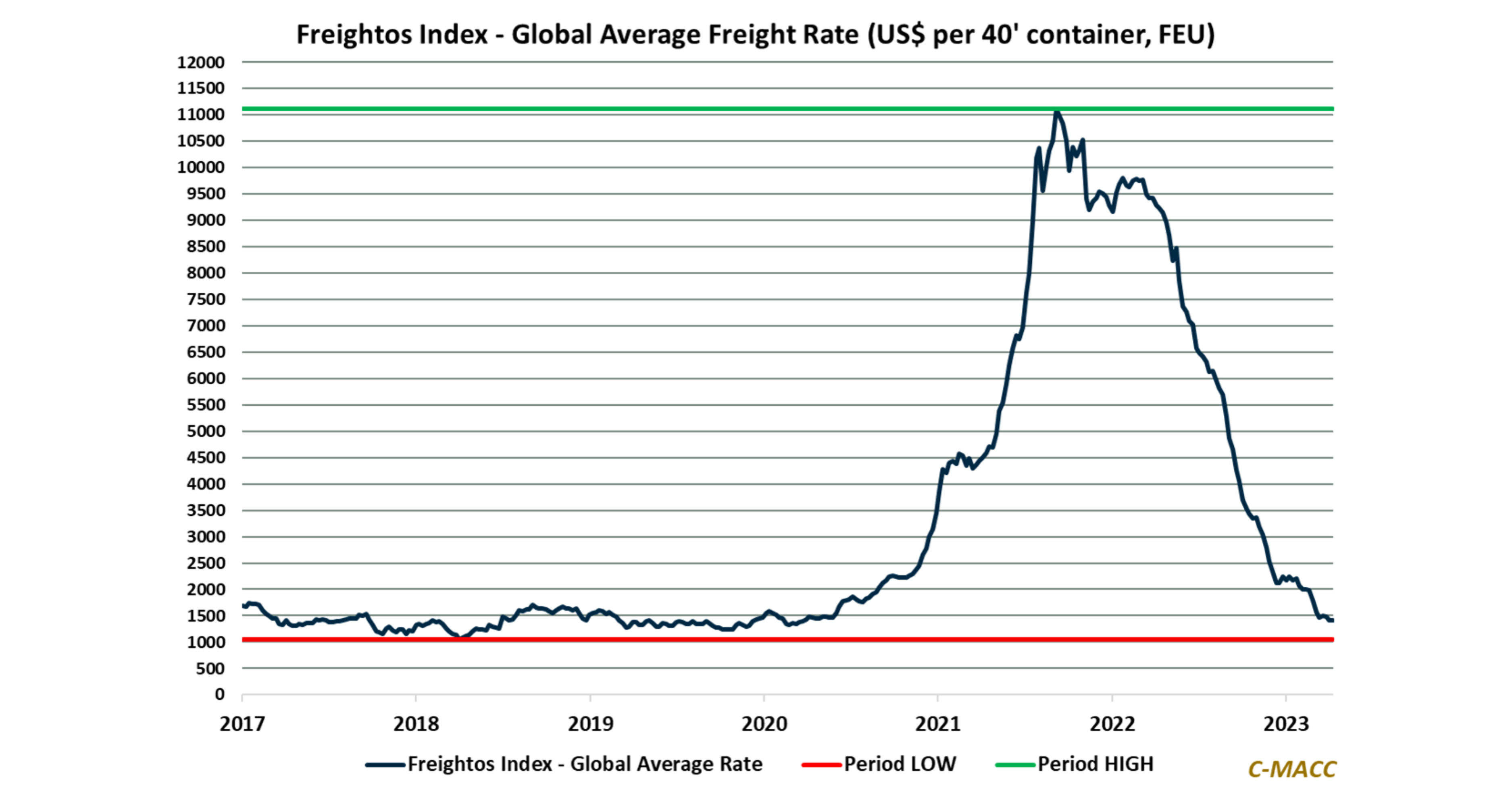 Global freight rates reflect downward pressure in 1H23, supporting the case for supply chain improvements and suggesting reduced commodity price differentials between regions in 2023.