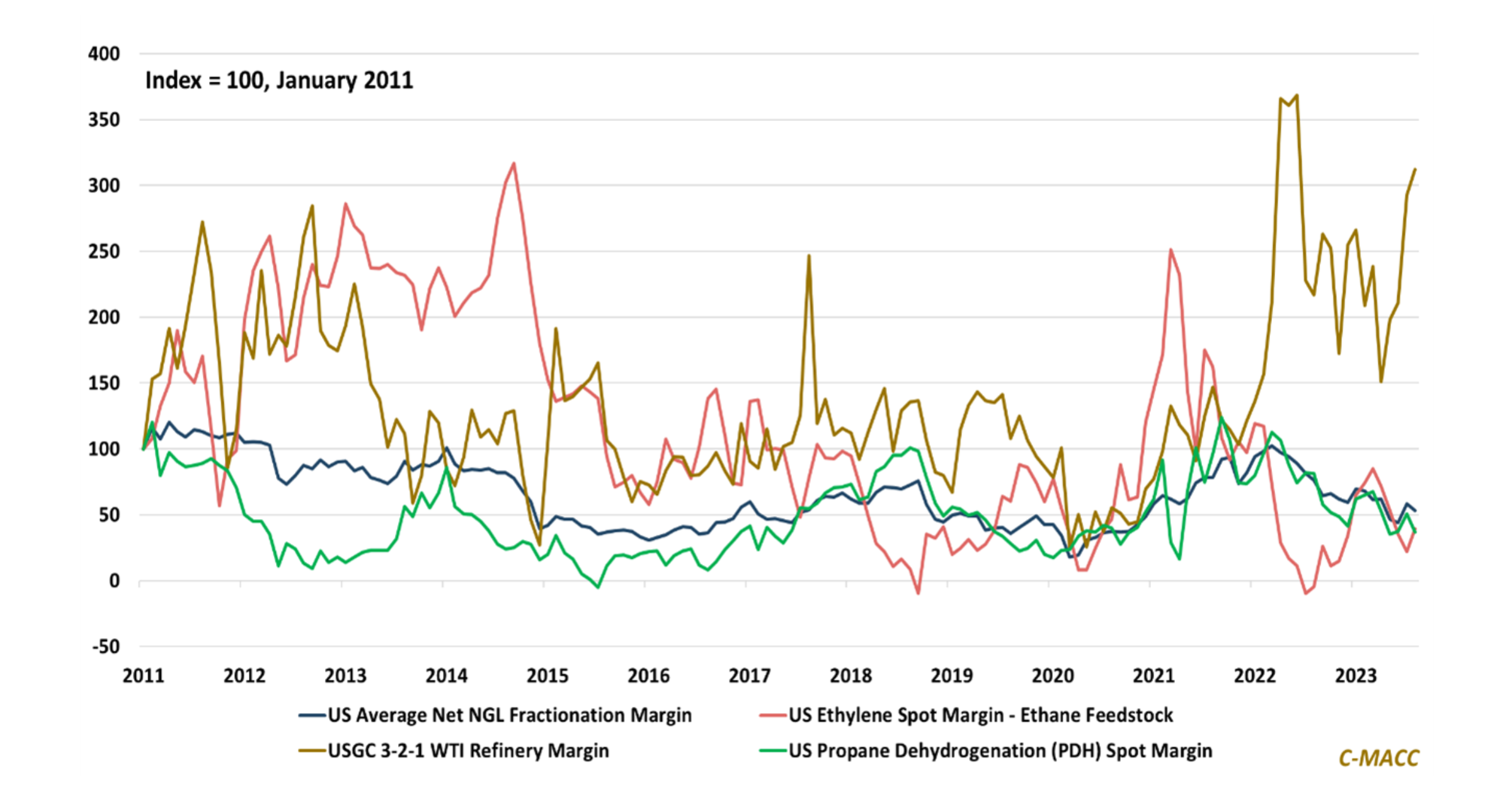 Energy and chemical sector strategic ties will strengthen as value-chain integration benefits rise – a lengthy period of low margins, even in cost-advantaged areas, will