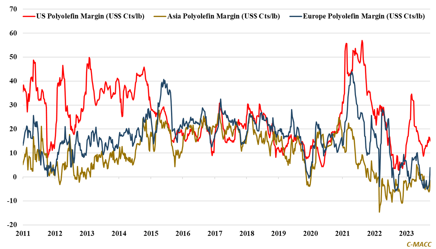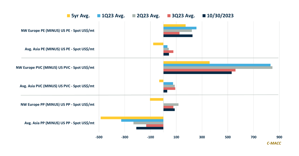 Feedstock Market Trends: North American petrochemical producers hold a sizable cost advantage compared to Europe and Asia. However, this advantage has shrunk YTD as its
