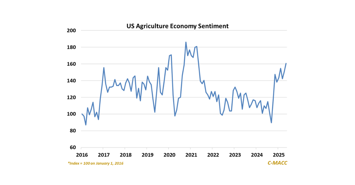 General Thoughts: US farmer sentiment has surged, but beneath the optimism lie structural pressures, including crop price weakness, lower margins, and a volatile demand setting,