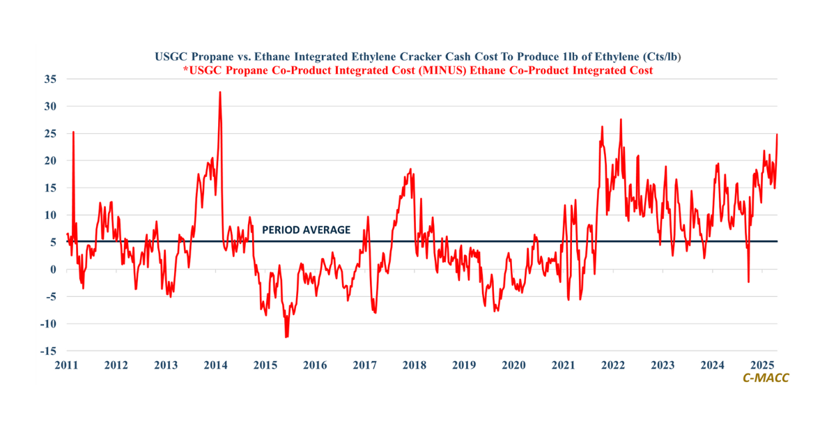 Asia and Europe now pay a structural propane premium as Middle East disruption risk lifts import costs, compressing PDH production margins abroad and reinforcing North