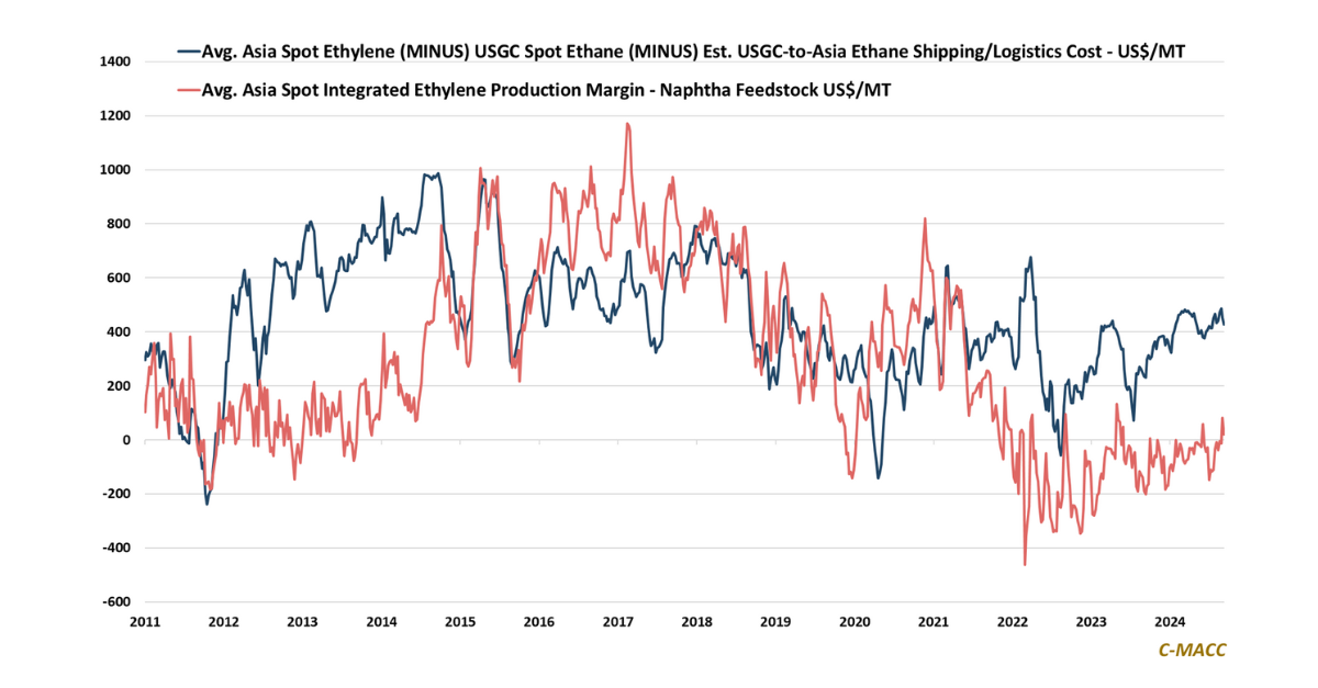 Chemical Market Trends: US integrated spot ethylene margins and US spot PDH unit margins increased last week as costs declined while ethylene and propylene prices