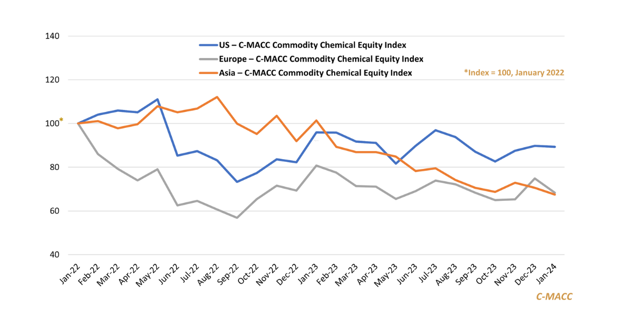 General Thoughts: Low-cost feedstock positions and a relatively healthy domestic economy are poised to benefit US commodity chemical producers in 2024 – their peers in