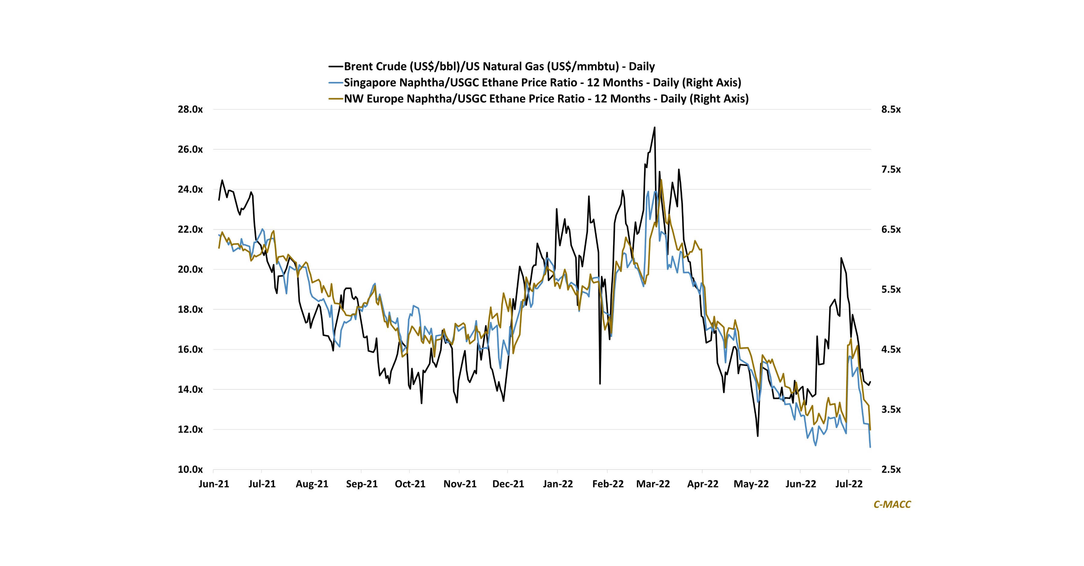 The global petrochemical production cost curve continues to flatten as USGC ethane values strengthen relative to Ex-US naphtha. We discuss the downward pressure facing US
