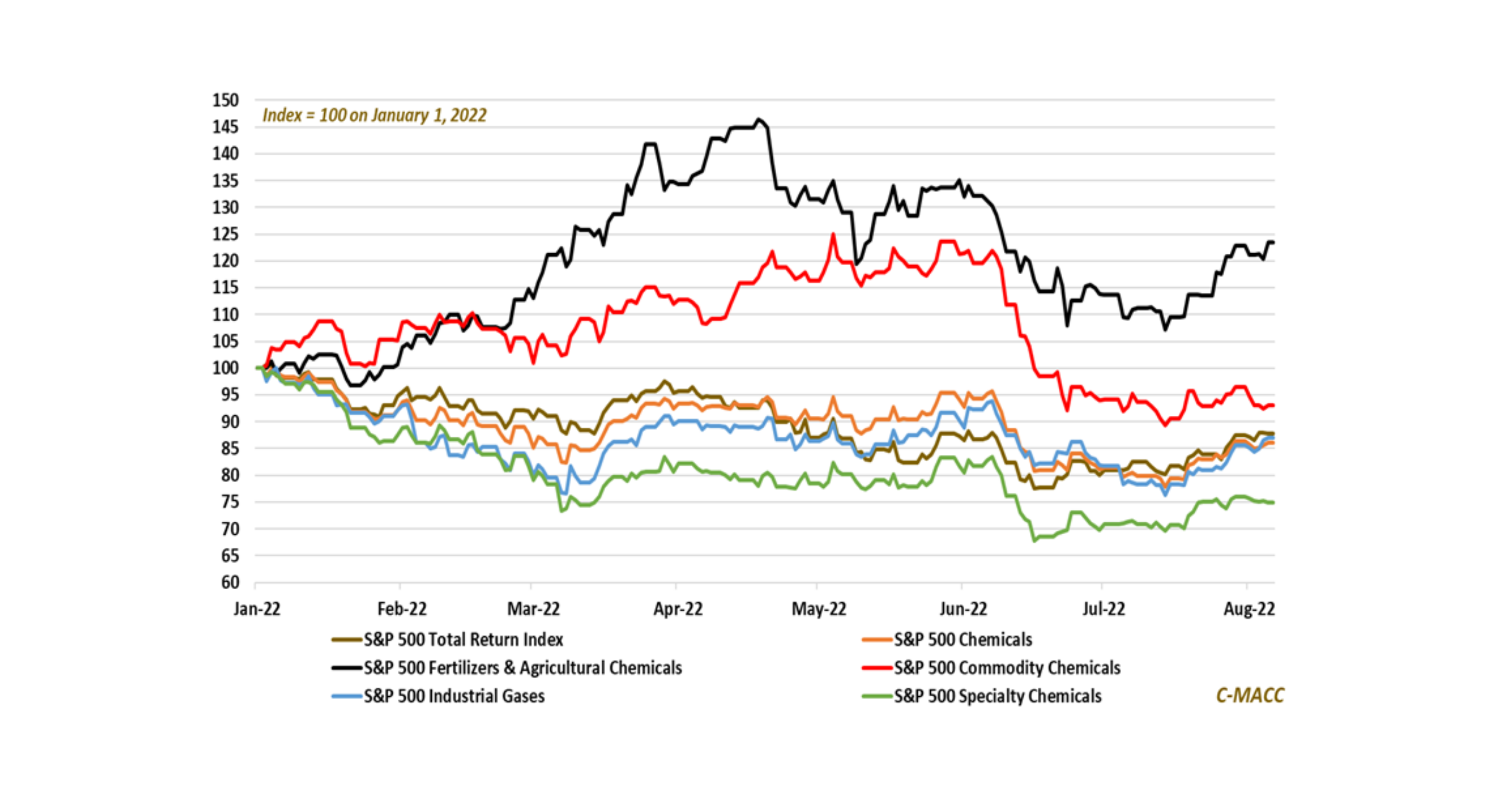 Fertilizer & agricultural chemical equities have outperformed other chemical sub-sectors since June, as crop and energy market trends remain constructive. The US agriculture sector