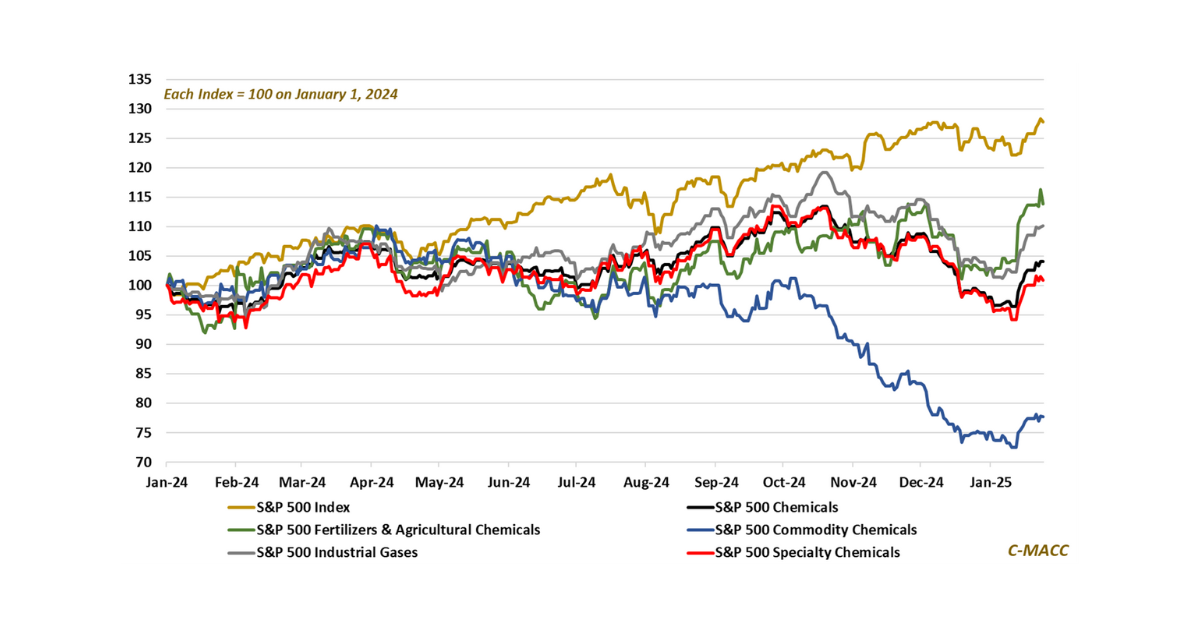 US equity market performance YTD implies that most expect a better year in 2025 for fertilizer and agricultural chemicals and a relatively weak one for