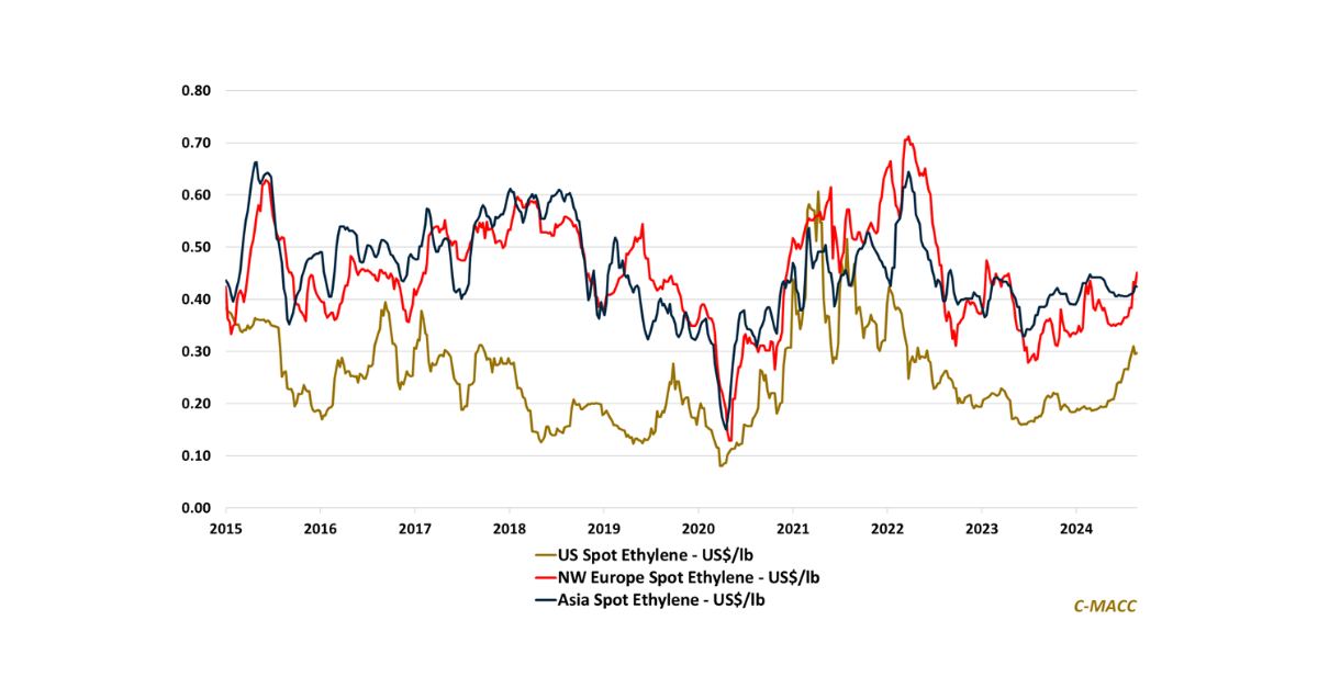 General Thoughts: We think recent factors favoring global commodity chemical price support will lessen in late 3Q24 and into year-end, and absent a major disruptive