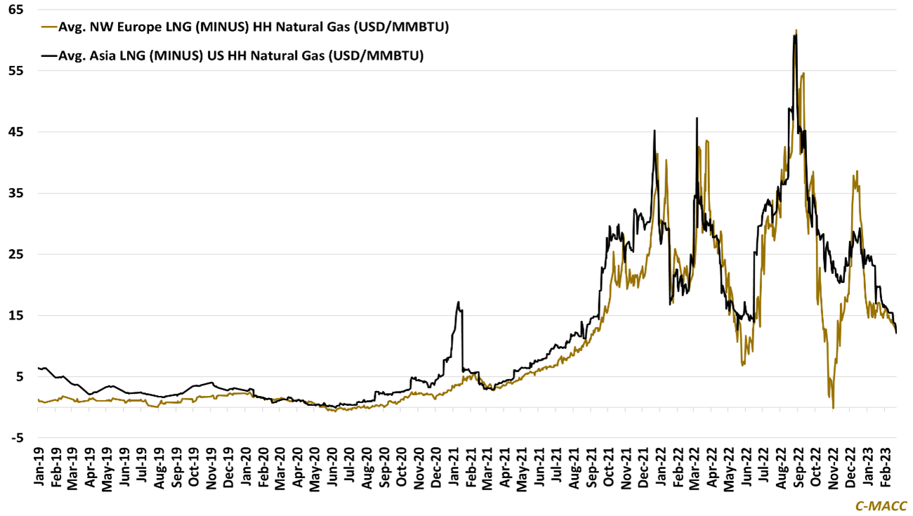 The North American chemical producer cost advantage remains significant relative to overseas peers, as is the case for domestic energy producers, suggesting sizable integration benefits.